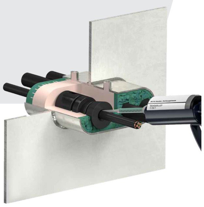 GEAQUELLO? E 950船舶多重管線貫穿密封系統(tǒng)包含9種產(chǎn)品,其中三種產(chǎn)品為艦船防火系統(tǒng)的核心部分,其余6種產(chǎn)品可根據(jù)使用環(huán)境按照需求來(lái)選擇。